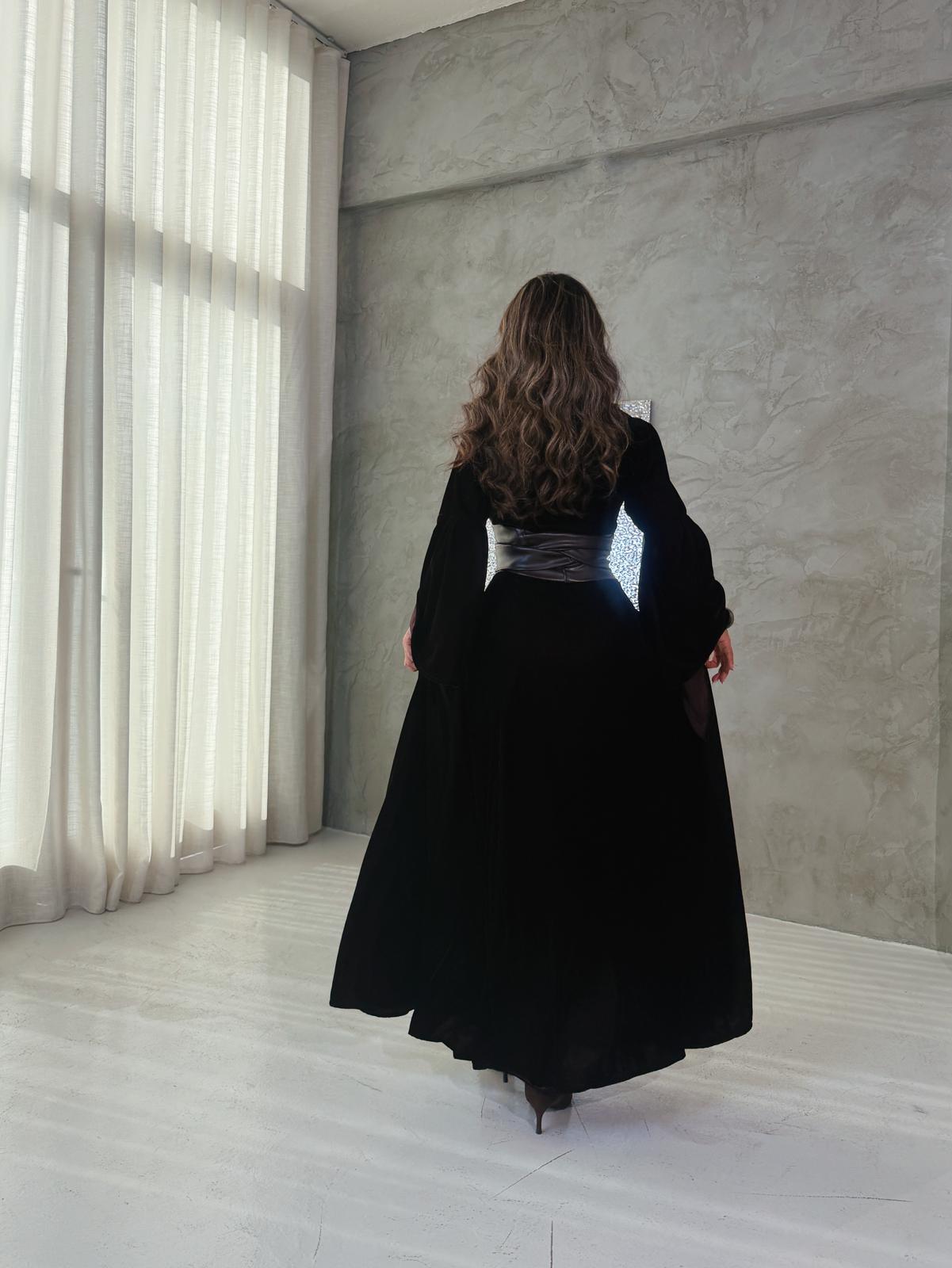 • - brown dress in velvet fabric