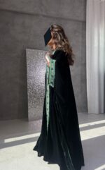 • - dark green wrap cardigan in velvet fabric