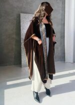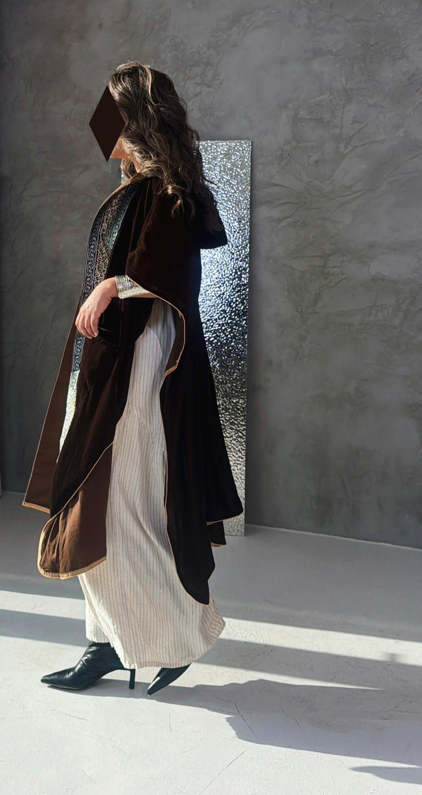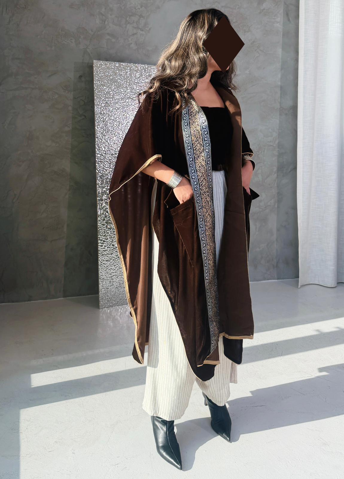 - - brown velvet shawl with two cargo pockets & hoodie