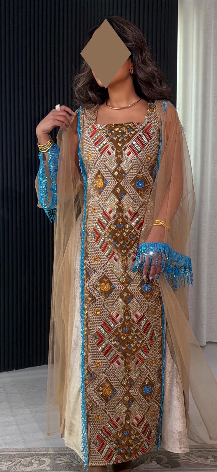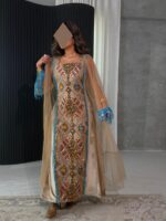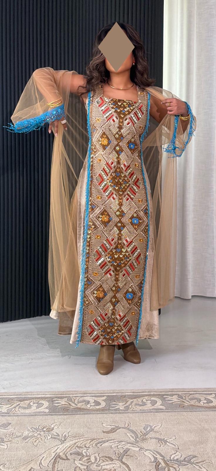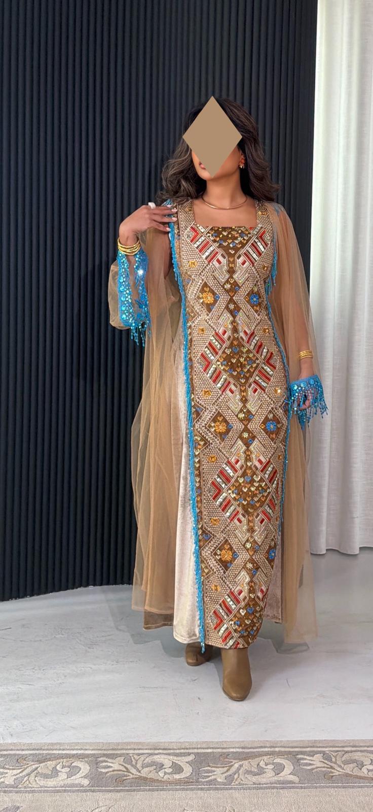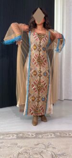 • - beige velvet dress with hand embroidered